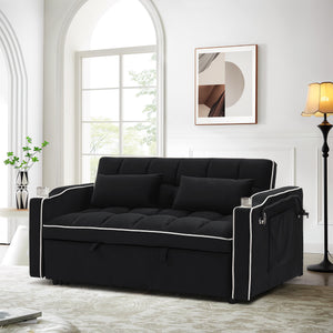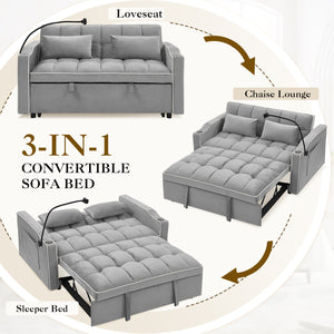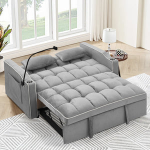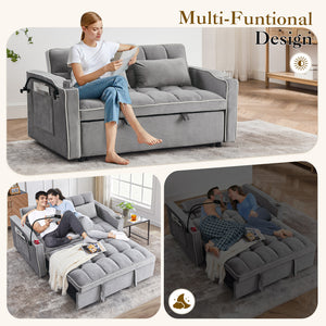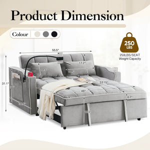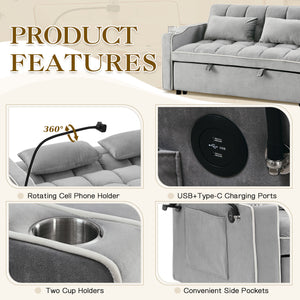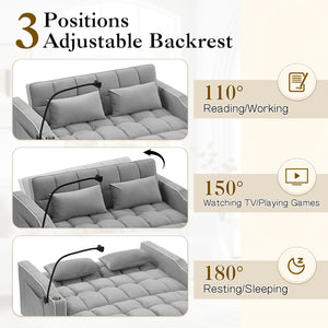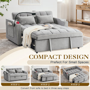 Dinosisco 3-in-1 Convertible Futon Sofa Bed, Loveseat Sleeper with Phone Stand, USB, Gray Velvet