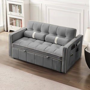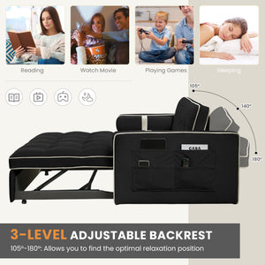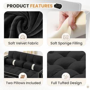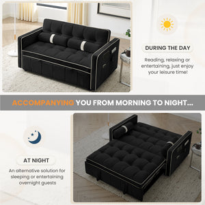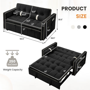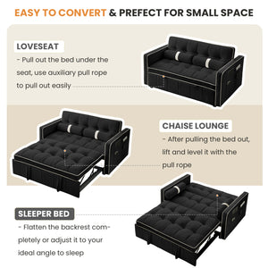 Dinosisco 3 in 1 Convertible Pull Out Sofa Bed, 55" Velvet Loveseat Sleeper for Living Room, Black