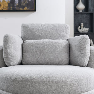 Dinosisco 39"W Oversized Swivel Accent Barrel Chair with Storage Ottoman, Gray Teddy