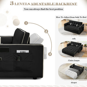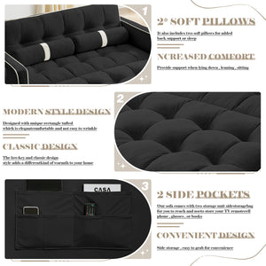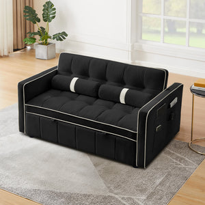 Dinosisco Convertible Sofa Bed, 55" Pull Out Sofa Bed - Tufted Velvet Loveseat Sleeper Sofa Couch for Living Room, Black