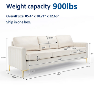 Dinosisco 85" Sofa Couch for Living Room, Modern Upholstered 3-Seater Couch in Beige Velvet