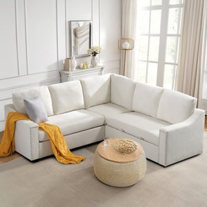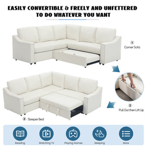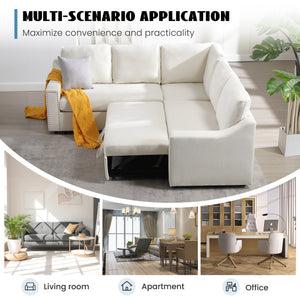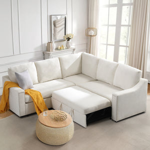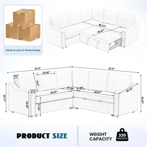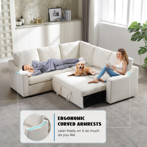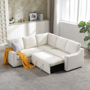 Dinosisco Couch and Sofa Sectional, 81.7" Corner Sofa with Pull-Out Bed, L-Shaped Sleeper Sectional Sofa, Living Room Furniture Set, Beige Chenille