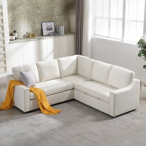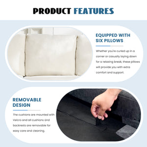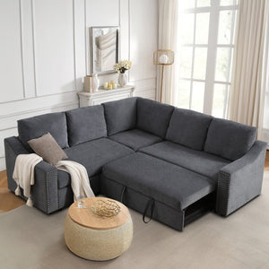 More than just a piece of furniture, this corner sofa will be the perfect companion for your living space. The included pull-out bed makes it easy to convert from a sofa to a sleeper bed, and this design allows you to have extra lounging space as soon as you need it, while maximizing convenience and utility for your living area. You can curl up in any corner you like, or lay down and stretch out, then read, watch movies, take a nap, and do whatever you want to do to your heart's content. The luxurious chenille fabric with high rebound foam padding provides a cozy space for you to relax and unwind. Six pillows will add to this relaxing haven, providing you with extra comfort and support. Comfort and convenience are perfectly blended in every detail, designed to provide you with a more convenient and enjoyable experience.