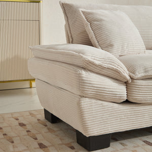 Dinosisco Deep Seat Loveseat Sofa, Corduroy Upholstered Sleeper Couch for Living Room, Beige