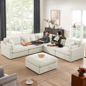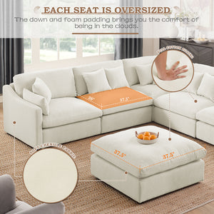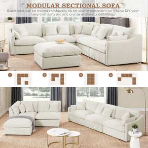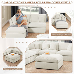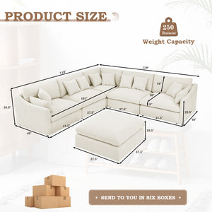 Dinosisco Modular Sectional Sofa with Large Ottoman, 119" Oversized Corner Sofa, Variable Sofa Couch Set, 6 Deep Seats L-Shaped Upholstered Cloud Couch for Living Room, Beige Chenille