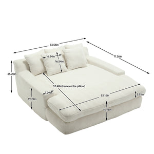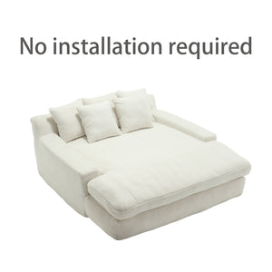 Dinosisco Oversized Deep Seat Lazy Sofa with 5 Pillows, Chenille 2-Seater Couch for Living Room, White