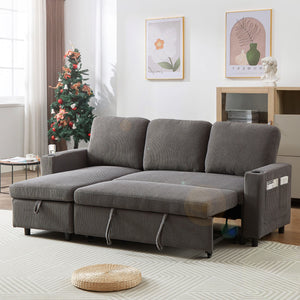 This convertible sofa bed comes with a pull-out bed, which can be easily and quickly converted from sofa to bed with the help of the auxiliary drawstring and the pulleys at the bottom, providing you with an extra sleeping space. The soft corduroy fabric and high rebound foam padding provide a relaxing and cozy experience for you.