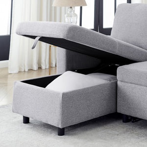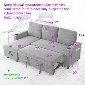 Dinosisco Sleeper Sofa Sectional, Convertible Sofa Bed with Reversible Storage Chaise, Cup Holders, L-Shaped Sectional Sofa for Apartment, Living Room, Light Gray Linen