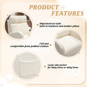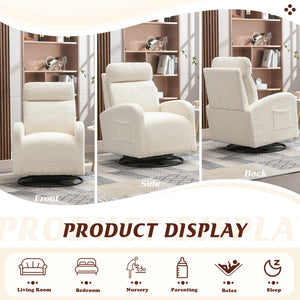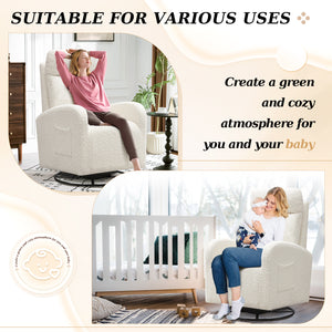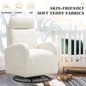 Dinosisco Teddy Glider Rocking Chair for Living Room, High Back Upholstered Swivel Glider Rocker for Nursery, White